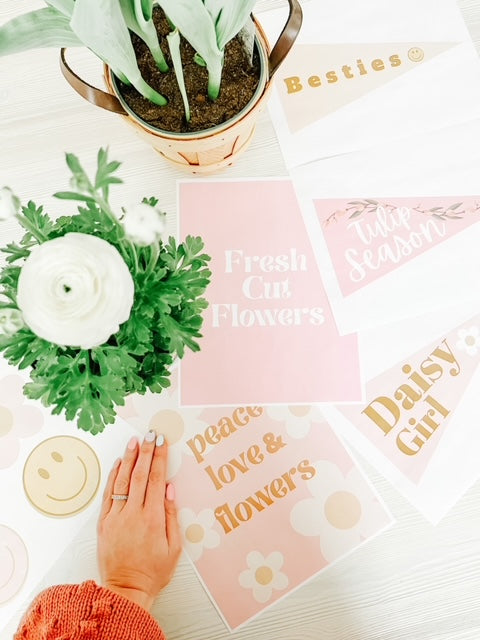 The perfect bundle for Spring. Are you looking to spruce up your spring decor? These prints and flags are perfect for adding to bookshelves, walls and frames. Includes 2 8x10 prints and 2 printable flags all with a flower theme. The actual colours of the prints are shown in the watermarked slides.